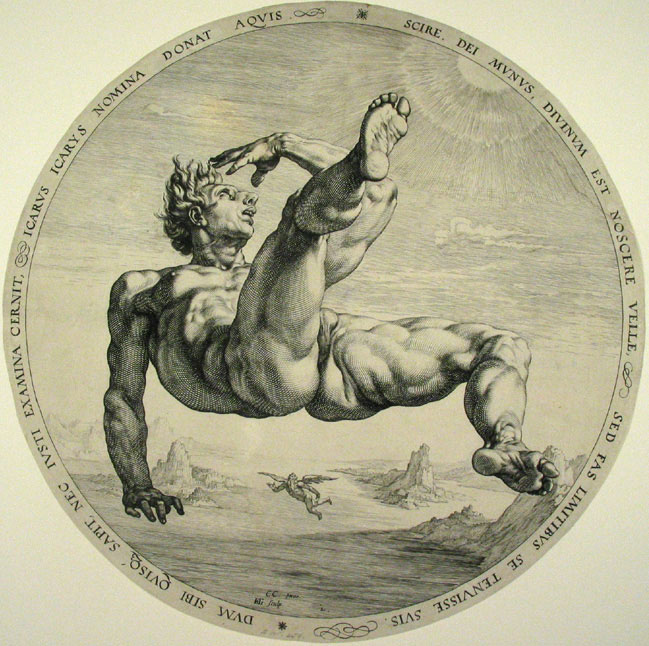 El mito de Ícaro quien vuela en alas de cera hacia el sol,  ilustra el destino del Puer cuando se polariza y desconecta del Senex: olvidando la voz de advertencia del padre y abandonado al entusiasmo y al éxtasis de su fantástico vuelo hacia el  gran astro, Ícaro encuentra su destrucción al atravesar el espacio en estrepitosa caída y entrar final y fatalmente en contacto con la realidad terrena…