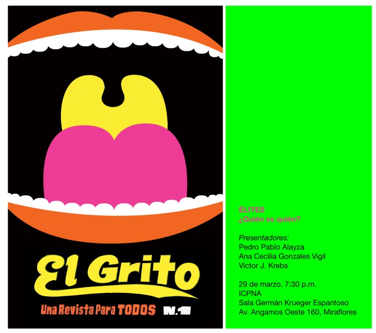 Acompáñanos a la presentación y brindis del primer número de EL GRITO, este lunes 29 de marzo a las 7:30pm en el ICPNA de Miraflores: