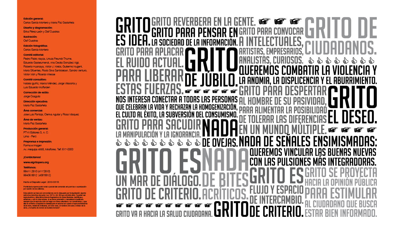 Pienso que todos los que estamos colaborando con EL GRITO creemos que es un excelente apuesta. Las ideas, el tono, el espíritu y la energía joven y vital de la que se concibe esta revista son todos elementos muy positivos y auspiciosos para nuestro país.